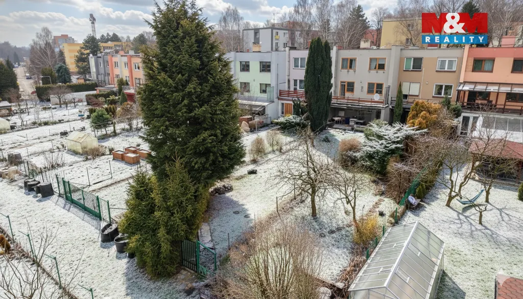 Venku má dům terasu, venkovní posezení a udržovanou zahradu 264 m². Pozemek je oplocený, takže děti/pes nejsou projekt „24/7 dohled“. Napojení: veřejný vodovod, kanalizace, plyn. Vytápění ústředním topením.