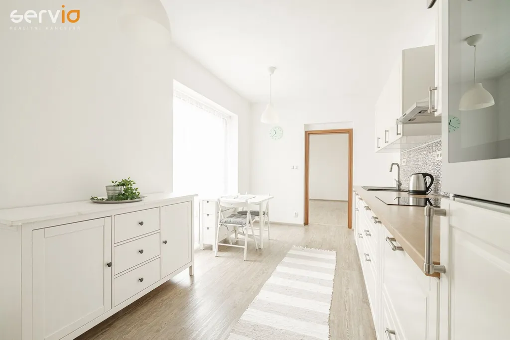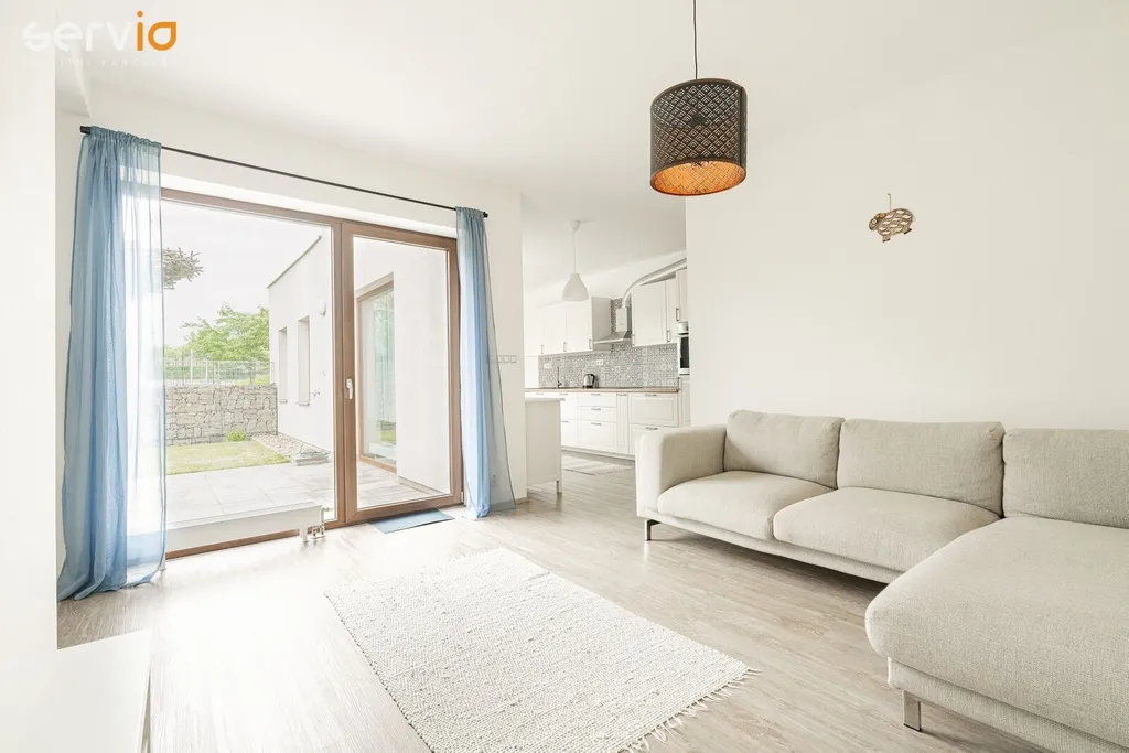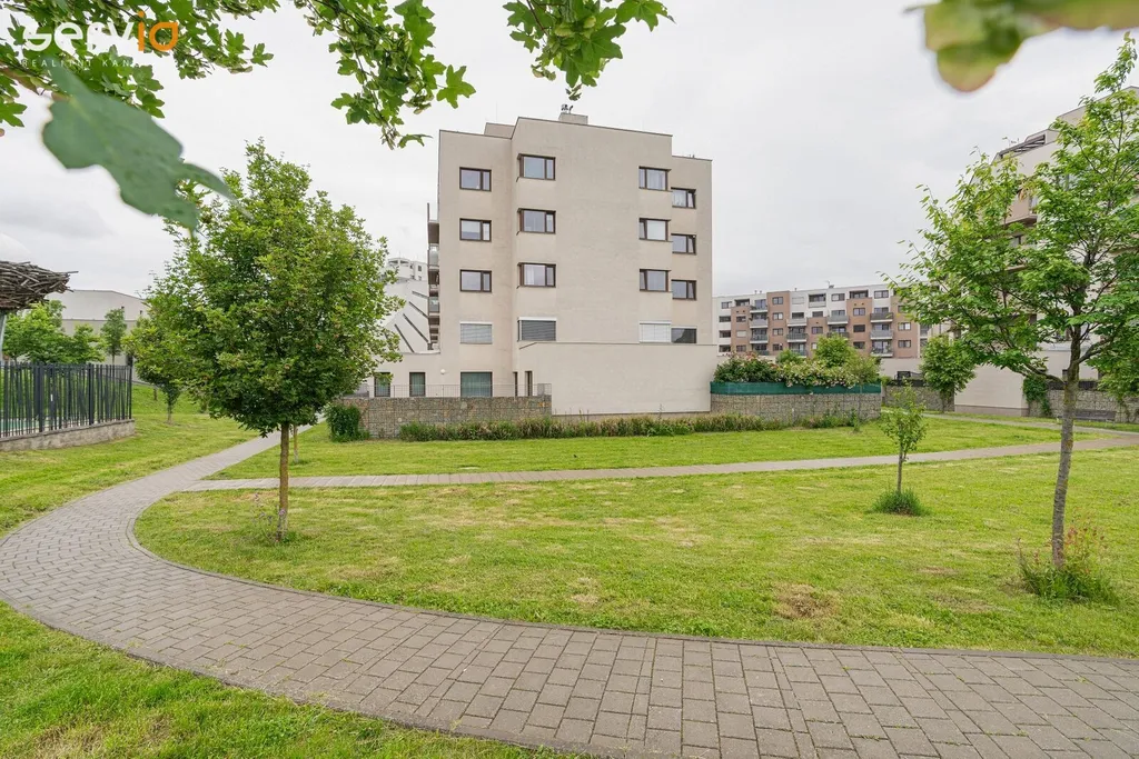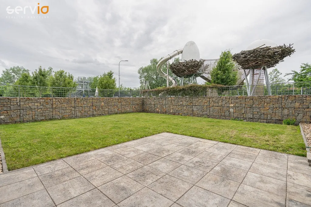 Ve výhradním zastoupení majitele nabízíme k prodeji novostavbu prostorného bytu 3+kk na ulici Kigginsova, v Brně - Slatině, se soukromou zahrádkou v osobním vlastnictví, o celkové užitné ploše 176 m2 (z toho zahrada 91 m2). Byt o ploše 80 m2 je umístěn v 1. NP cihlového domu s bezbariérovým přístupem a jeho součástí je sklep (cca 5 m2) a kryté parkovací stání v 1.PP domu kolaudovaného v roce 2017. V domě je výtah, kolárna - kočárkárna. Sklep se nachází v blízkosti bytu na stejném podlaží. Při vstupu do bytu je prostorná vstupní chodba, samostatné WC s umyvadlem, z chodby navazuje vstup do obytné části bytu, kde je umístěna kuchyně s jídelní částí. Byt se prodává částečně zařízený. KL včetně spotřebičů (indukce Bosch, el. trouba Whirlpool, nová digestoř, myčka a pračka Gorenje). Ostatní nábytek dle foto. Od jídelního stolu je krásný výhled do soukromé zahrádky, která je součástí bytu a vstup na ni je z obývací části navazující na kuchyň s jídelní částí. V zadní částí za kuchyní je ložnice. Vedle obývací části se nachází prostorná koupelna s vanou, místem pro pračku a za koupelnou je vstup do dalšího pokoje (může být pracovna, dětský pokoj, druhá ložnice). Byt je velmi hezky dispozičně řešený a prosvětlený, výhodou je soukromá zahrádka s terasou z dlažby a trávníkem, vývod na vodu a el. zásuvka, soukromí zajišťují ozdobné gabiony.