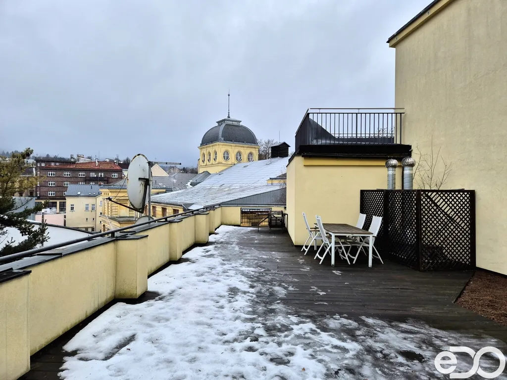 Dům samotný nabízí nadstandardní společné prostory ve velmi dobrém stavu. K dispozici je sklepní kóje, kočárkárna i kolárna, a výrazným benefitem je prostorná společná terasa orientovaná na slunnou stranu s výhledem na Petřín, která poskytuje příjemný kontrast k dynamice centra a místo pro odpočinek nebo posezení.
