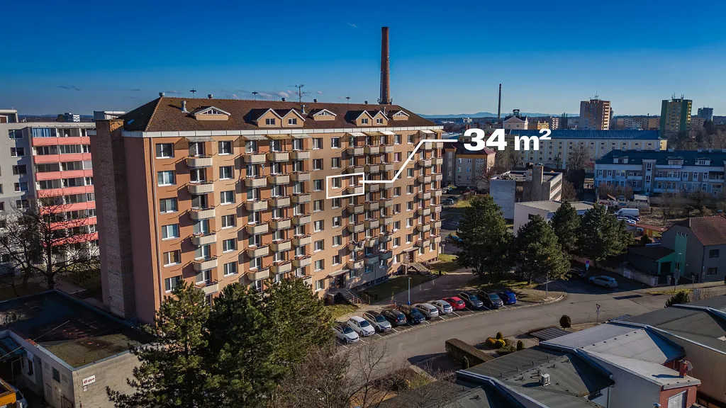 Celková podlahová plocha bytu je 33,2 m² včetně sklepu + balkon 2,7 m².