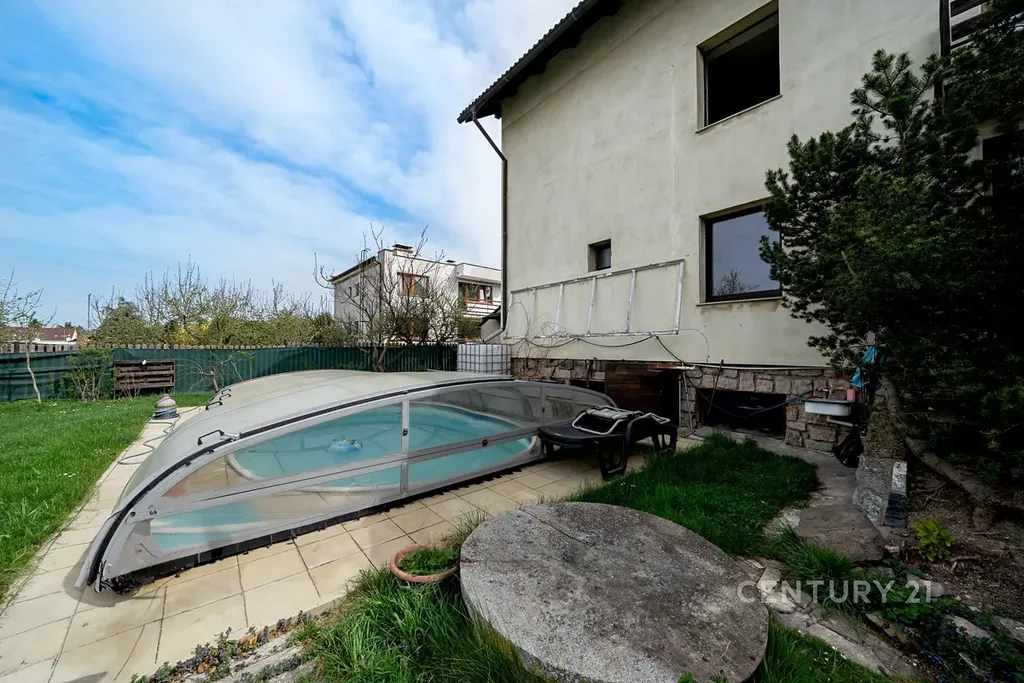 K bytu patří také mimořádné zázemí a exteriérové prvky, které u běžných bytů nenajdete. Součástí prodeje je nadstandardně prostorná garáž pro dvě osobní auta s dostatkem úložných prostor a regálů. K relaxaci slouží podíl na společné zahradě o celkové výměře 739 m², přičemž exkluzivně k tomuto bytu patří bazén, který využívají pouze jeho majitelé. Na zahradě se dále nachází zděný zahradní domek a pergola s venkovní kuchyní, což z bytu dělá perfektní místo pro rodinný život i setkávání s přáteli. Tato nemovitost je ideální volbou pro ty, kteří hledají komfort rodinného domu s výhodami bytu a chtějí žít v obklopení přírody s rychlým spojením do velkoměsta.