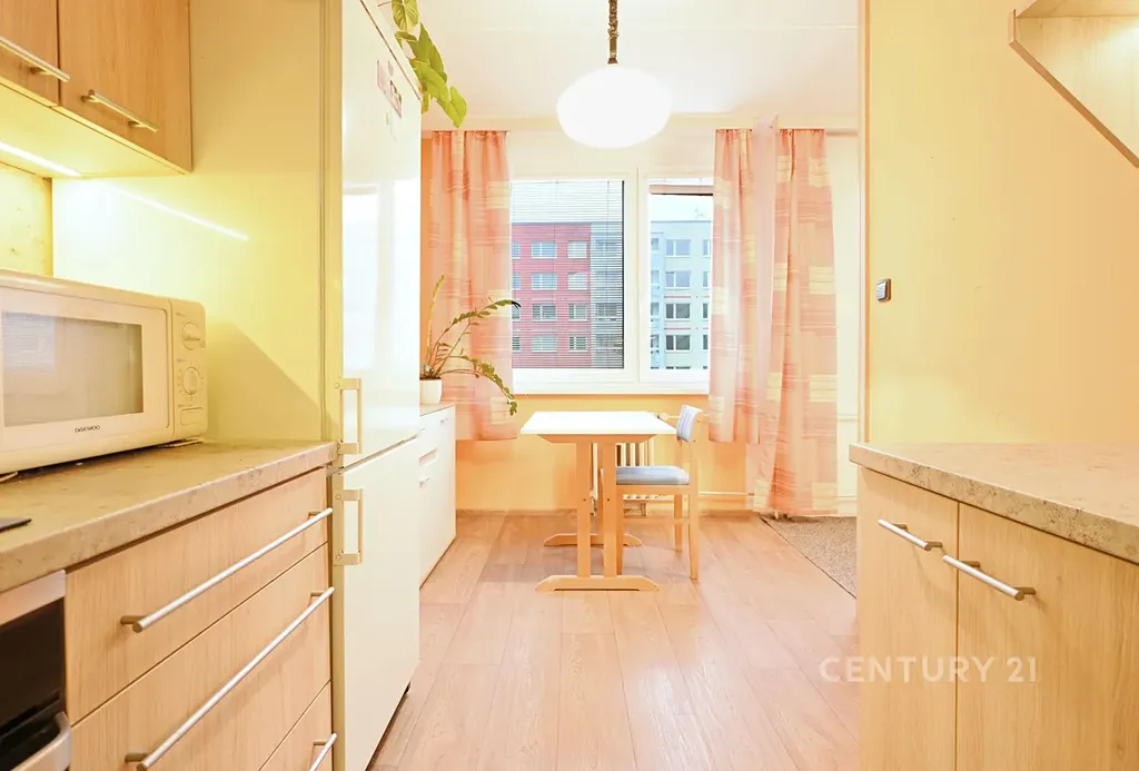 Zrekonstruovaná kuchyně: Nejpoutavější částí bytu je zrekonstruovaná kuchyně s jídelním koutem, která tvoří srdce celého domova.