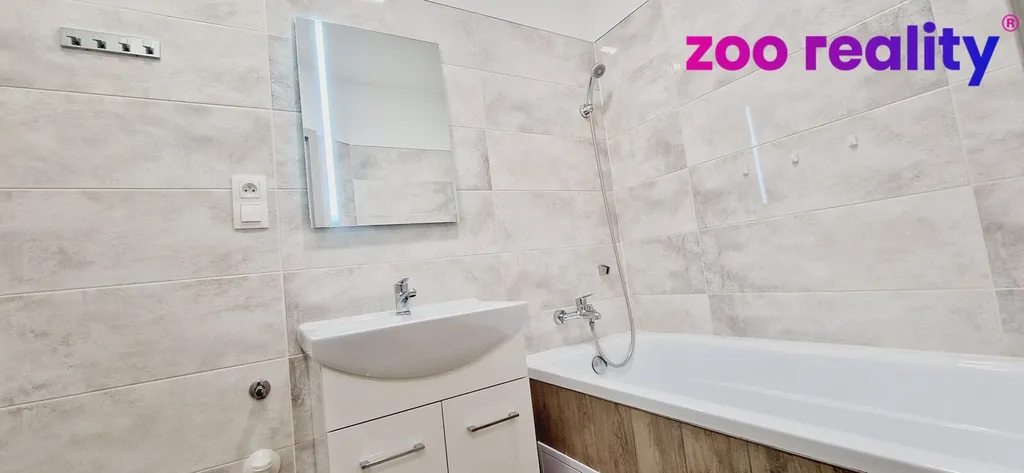 Nová bytová jednotka prošla celkovou rekonstrukcí, včetně nového bytového jádra ze sádrokartonu. V koupelně je vana, umyvadlo se skříňkou,