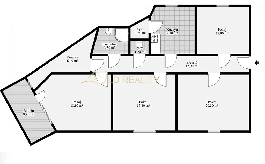 Byt disponuje velmi praktickou dispozicí, kdy jsou všechny pokoje samostatně přístupné a neprůchozí, což zajišťuje dostatek soukromí pro rodinné bydlení i případné investiční využití. Nemovitost je v dobrém, udržovaném stavu, nicméně je vhodná ke kompletní rekonstrukci, která novému majiteli umožní přizpůsobit si bydlení dle vlastních představ.
