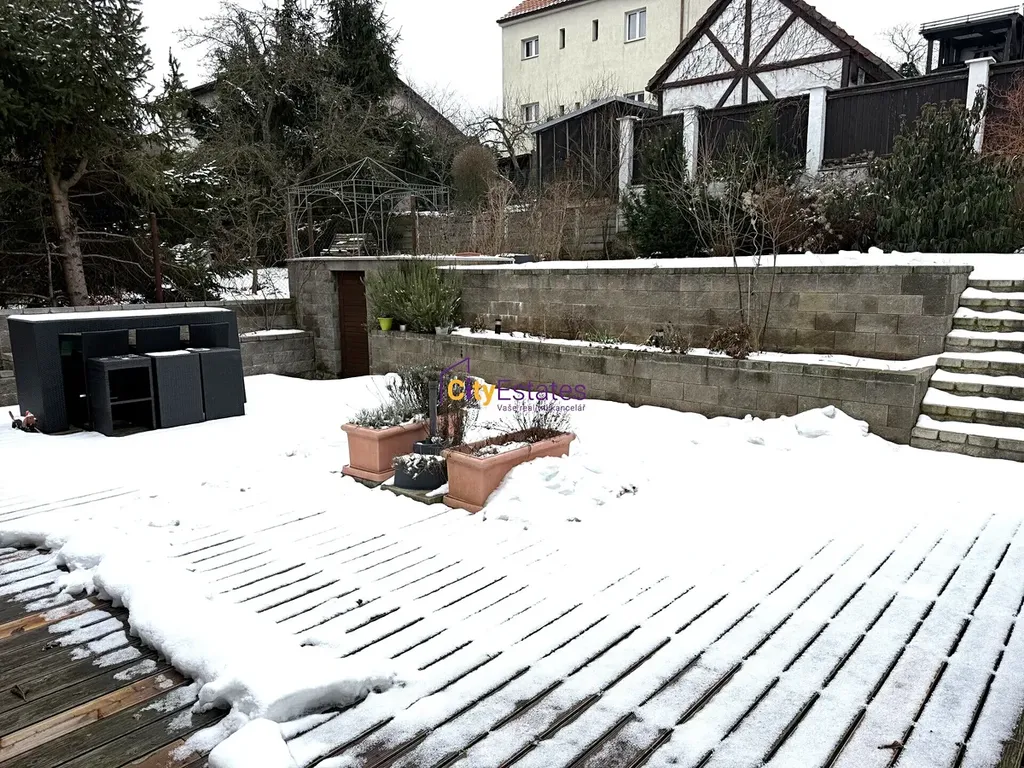 Exteriér: Udržovaná zahrada navazující na terasu je ideálním místem pro relaxaci. Terasa je vybavena zahradním nábytkem. Z terasy je vstup do malého sklepa.