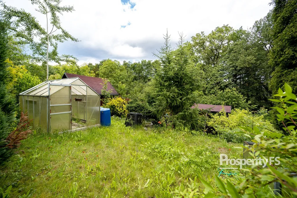 Chata o zastavěné ploše 17m², do které není zavedena elektřina, která je v řešení, řád se sezónní vodou je přiveden na pozemek. Zahrada, která je mírně svažitá a v katastru vedena jako zahrada o výměře 561m², zajištuje výborný předpoklad pro aktivní i relaxační odpočinek a dostatek prostoru pro bazén, trampolínu, pěstování ovoce i zeleniny