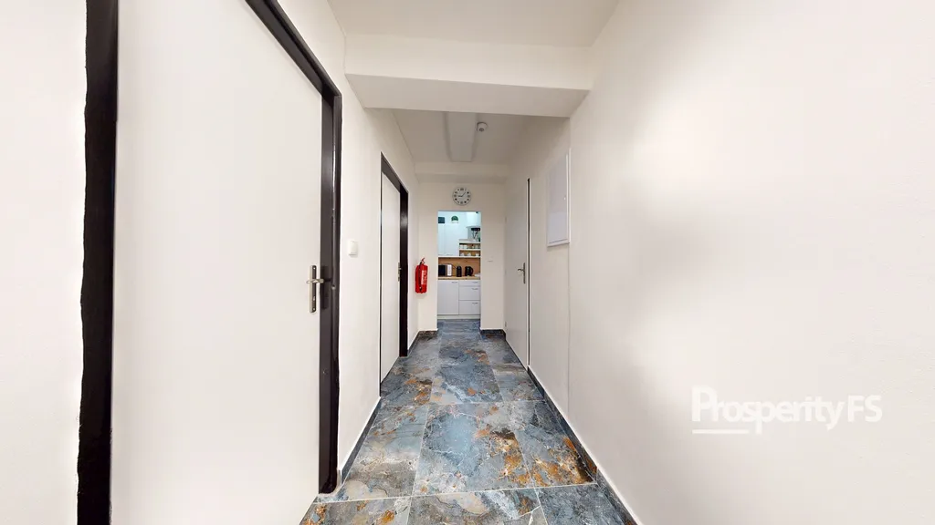 Součástí jsou i prostorné společné prostory o velikosti 24,4 m², kde najdete vše, co potřebujete pro komfortní provoz: lednici, kávovar, společné toalety a šatnu. Vaši klienti se k vám dostanou snadno a pohodlně díky vlastnímu telefonu propojenému se zvonkem u hlavního vchodu. Vchod se nachází u centra města na hlavní ulici Masarykova naproti fitness centru "Gymit.. "