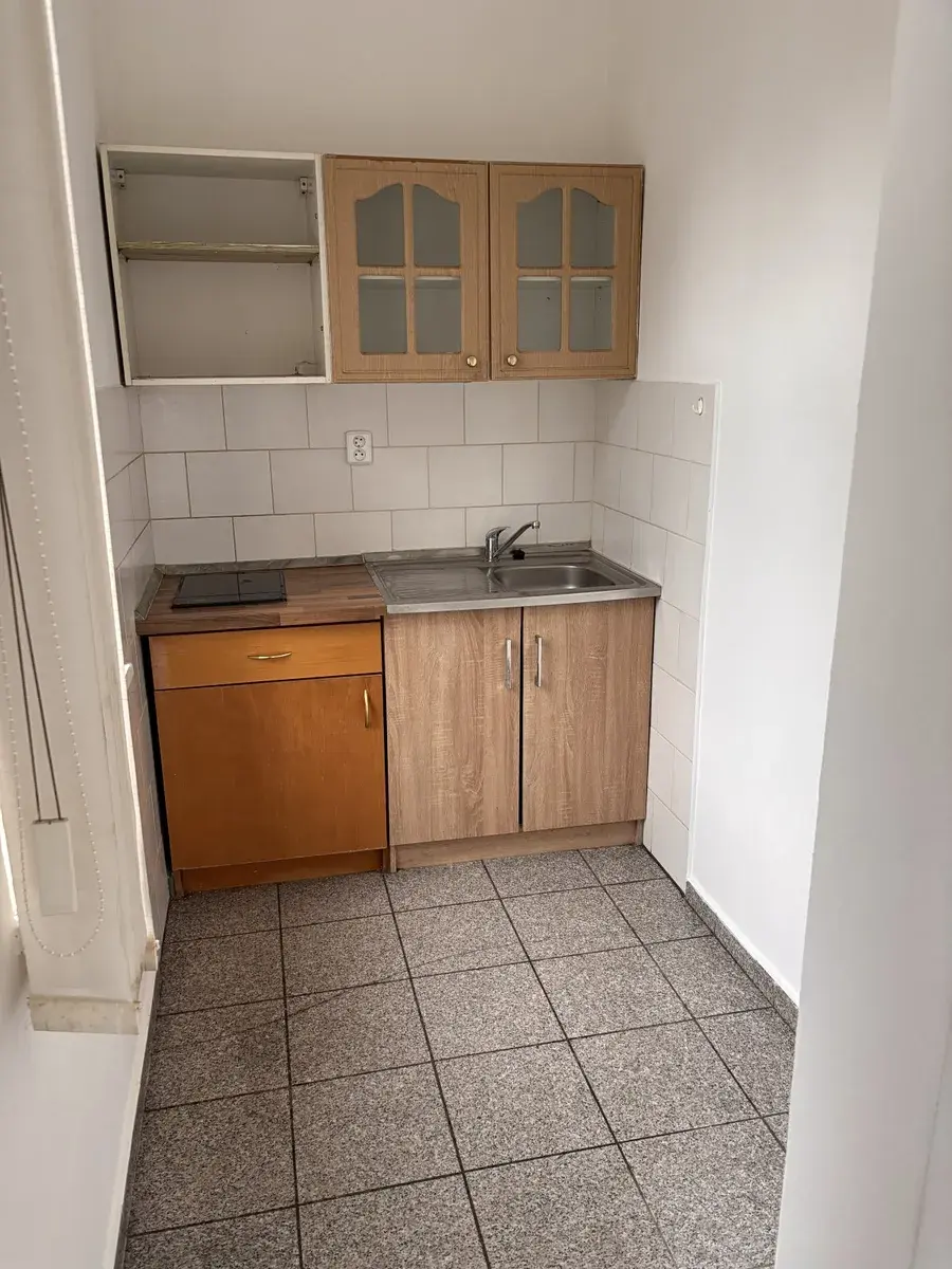 Pronájem bytu 1+kk ve zděném domě v ulici Kateřinská, Liberec. Byt má samostatný vstup ze dvora domu a je v přízemí. Je zde podlahové topení. Po vstupu do bytu jsou dveře do koupelny a WC. Zde je sprchový kout a umyvadlo. Další místnost je komora, kde je kombinovaný plynový kotel a přípojka na automatickou pračku. Dále se z předsíně vstupuje do obytné místnosti, která je díky 4 oknům velmi světlá. Vedle obytné místnosti je menší kuchyňka, která má také okno. Je zde dvouplotýnková elektrická varná deska. Zálohy na elektřinu, plyn a vodu se platí pronajímateli. Na vše jsou měřáky a probíhá vyúčtování služeb. Okna jsou do dvora a zahrady. Parkování je u domu.