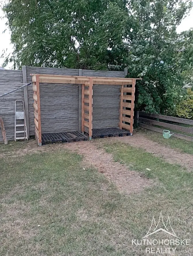 Na zahradě je venkovní posezení (terasa se zastřešenou pergolou) okrasná i užitková zahrada, kolny.