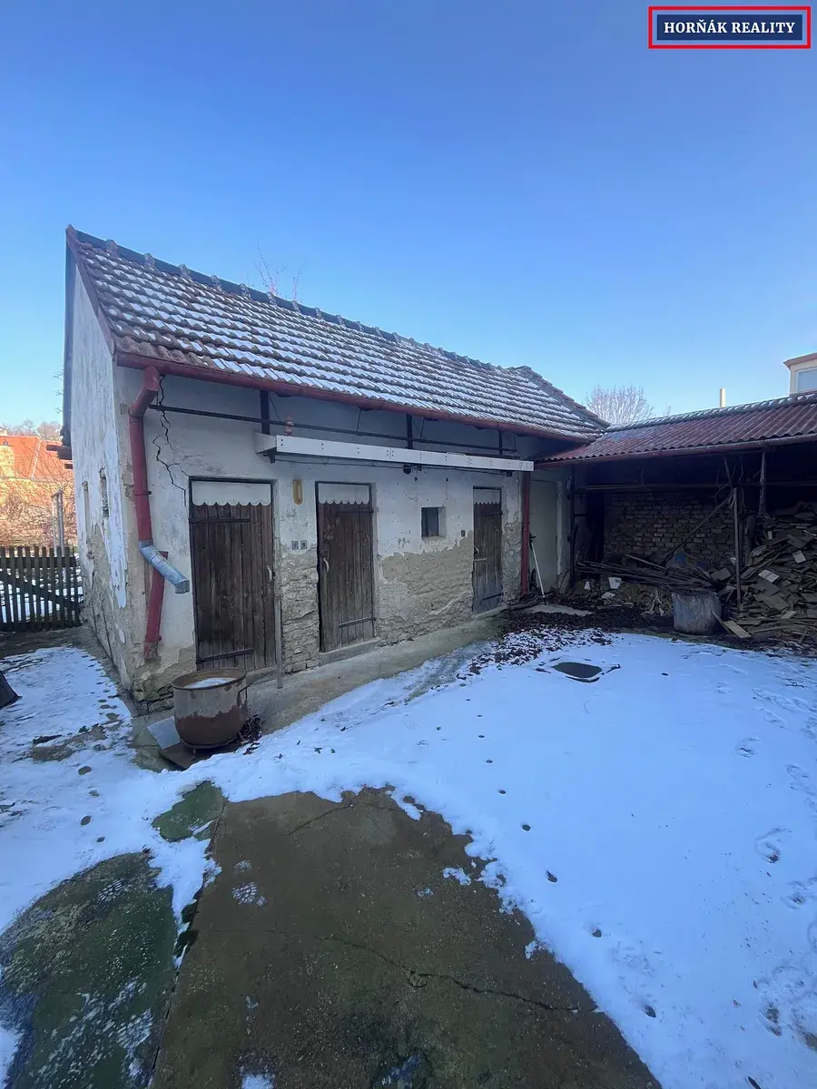 Ze zadní části domu je vstup na dvůr s pergolou, který navazuje na menší hospodářskou budovu. Za ní se nachází rovná a udržovaná zahrada – ideální pro relaxaci nebo domácí pěstování.