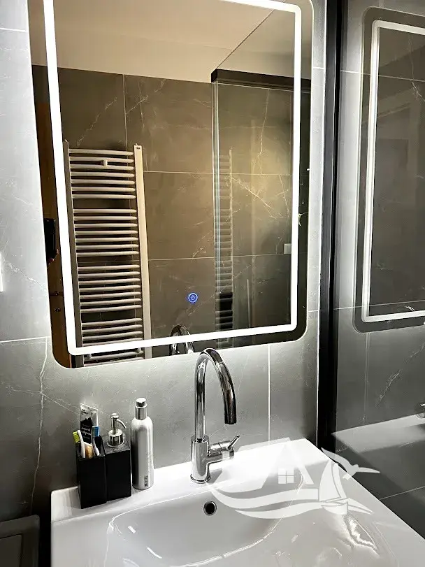 Byt o ploše 98 m² nabízí dvě prostorné ložnice, moderní koupelnu s podlahovým vytápěním, otevřený obývací prostor propojený s kuchyní a jídelnou a příjemnou lodžii, která slouží jako přirozené prodloužení obytné části. Velké prosklené plochy zajišťují dostatek denního světla a vytvářejí vzdušnou atmosféru. Interiér byl zařizován s důrazem na detail, estetiku i praktičnost. Použité materiály patří k vyššímu standardu, podlahy, keramika i sanitární vybavení působí harmonicky a nadčasově.