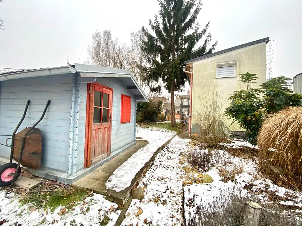 Ve dvoře je společné posezení, terasa, místo pro bazén, a prostorná zahrada se zahradním domkem.