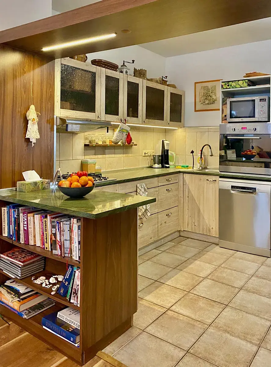 Dům je připojený na všechny inženýrské sítě, vytápěn je plynovým kondenzačním kotlem. V přízemí budovy se nachází vstupní chodba, která spojuje dům a dvorní trakt. Ze vstupní chodby je přístupný byt 2+1 o podlahové ploše 62m2, obytné podkroví 40m2 a technická místnost 5,4m2 (kotel, pračka), garáž 18m2 je využívána jako studio.