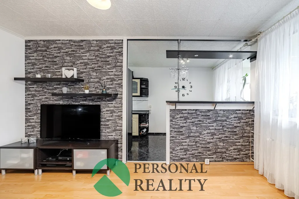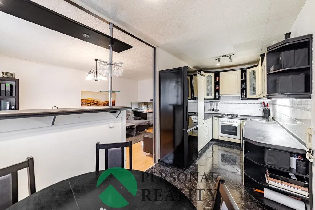 Dispozice bytu: Byt se nachází v prvním patře, druhé nadzemní podlaží, z celkových 10 pater. K dispozici jsou 2 nákladové výtahy. K bytu náleží sklopní kóje. Byt je velice prostorný. Najdeme zde prostornou chodbu s úložným prostorem, obývací pokoj, kuchyň s jídelním koutem, dětský pokoj, ložnici s šatnou, prostornou koupelnou, kde proběhla rekonstrukce a došlo tak ke zvětšení prostoru. V koupelně najdeme vanu i sprchový kout. WC jako místo vedlejší. Podél obývacího. pokoje a kuchyně vede zasklená lodžie.