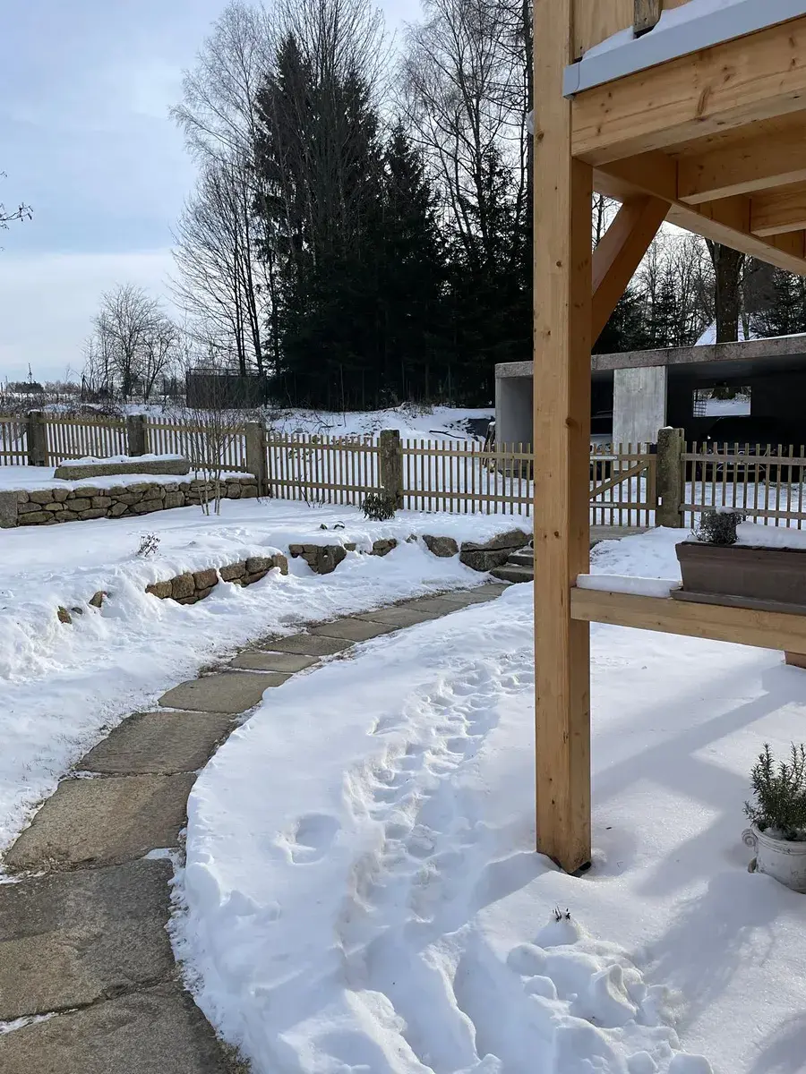Technické provedení a vybavení. Podlahové vytápění v celém domě. Vytápění kvalitním elektrokotlem. Velkoformátová okna a dveře s izolačními trojskly. Podlaha vinyl a retro dlažba. Zateplená fasáda (polystyren 15 cm). Zdivo – vyzdívaný skelet Střecha z poctivých trámů (krokve, kleštiny) + kvalitní střešní tašky. Exteriér a příslušenství. Rozestavěná zděná garáž cca 70 m² – možnost dokončení dle vlastních představ. Zásuvka 380 V. Terasy a chodník z kamenných zápražáků. Zděný plot s kamennými sloupky a dřevěnými výplněmi. Tato nemovitost představuje výjimečnou kombinaci moderního bydlení, klidu a nádherné přírody. Ideální volba pro trvalé bydlení i rekreaci. Srdečně doporučuji osobní prohlídku. Bližší informace u makléře, prohlídky možné kdykoliv po předchozí telefonické dohodě.