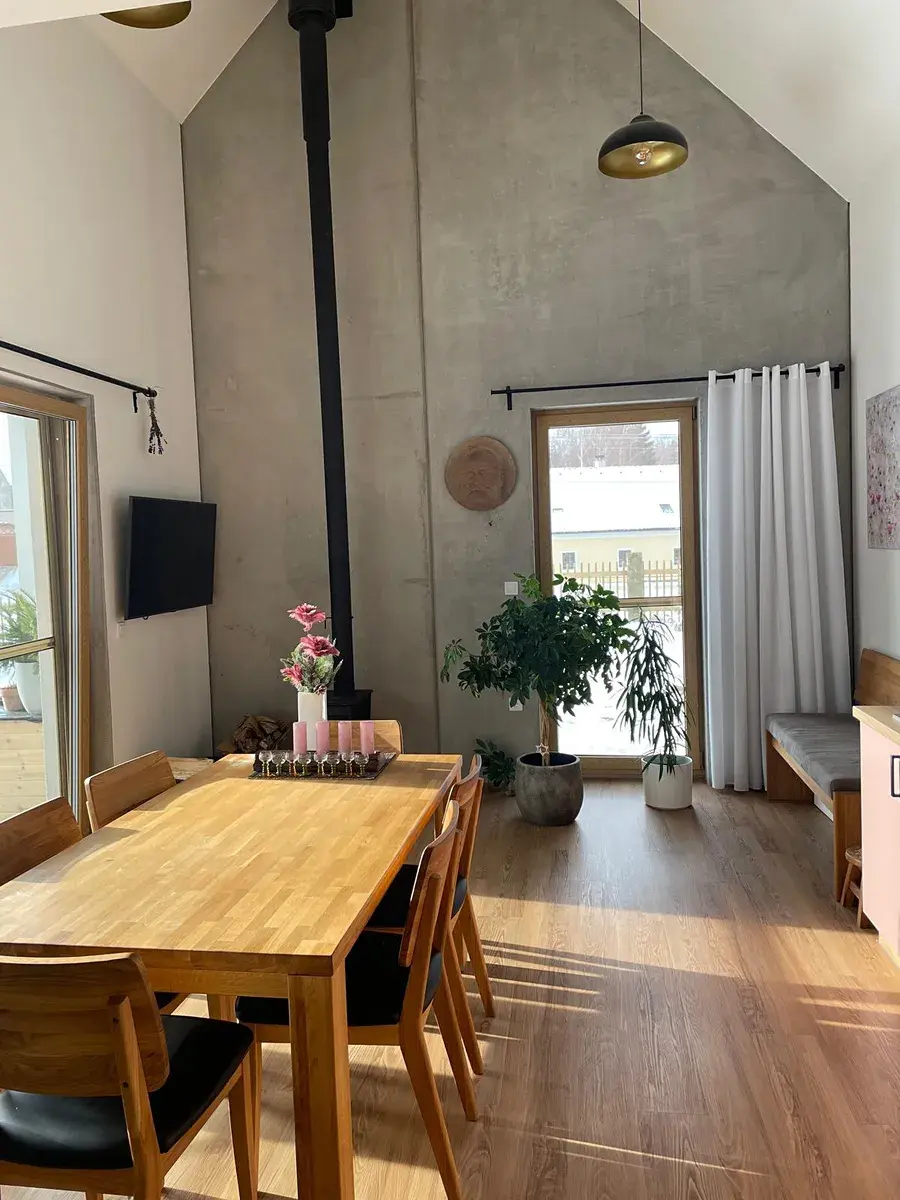 Prodej novostavby rodinného domu v srdci České Kanady. Prodám elegantní novostavbu rodinného domu o dispozici 4+kk (106 m²) s možností rozšíření na 5+kk až cca 130 m², doplněnou o rozestavěnou garáž 70 m², sklad 15 m² a zahradu. Nemovitost se nachází na konci malebné vesnice, v klidném prostředí přírodního parku Česká Kanada, v nadmořské výšce cca 640 m. Jedinečné místo s čistou přírodou, klidem a soukromím, přesto s dobrou dostupností: Jindřichův Hradec cca 15 km, Nová Bystřice / hranice s Rakouskem cca 10 km. V bezprostřední blízkosti Golfresort Monachus – hřiště Nová Bystřice a Mnich. Dům je světlý, vzdušný a velmi prostorný, a to nejen díky promyšlené dispozici, ale také díky velkoformátovým oknům a vysokému stropu do štítu v hlavním obytném prostoru. Příjemnou atmosféru podtrhují kvalitní litinová kamna Jøtul. Obývací pokoj s kuchyní a jídelnou orientovaný do zahrad. Přímý vstup na terasu přes portálové okno. Kuchyňská linka na míru od renomované firmy, včetně všech spotřebičů