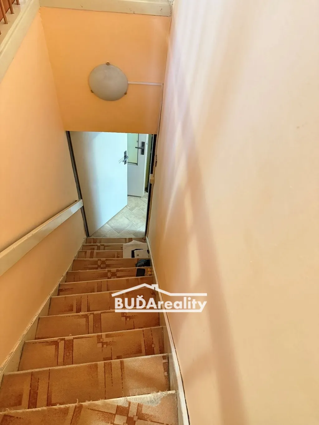 Vstupní části je chodba, z níž se dostanete do koupelny a nebo do sklepa. Sklep se nachází pod obývacím pokojem. Kuchyň je částečně průchozí do obývacího pokoje. Mezi obývacím pokojem a kuchyní se nachází schodiště, které Vás dovede průchozích pokojů.