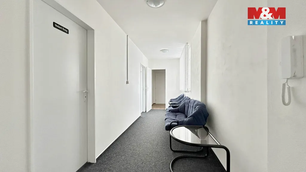 čtyři samostatné kanceláře (z toho dvě průchozí), zádveří, společnou chodbu, kuchyňku a samostatnou toaletu.