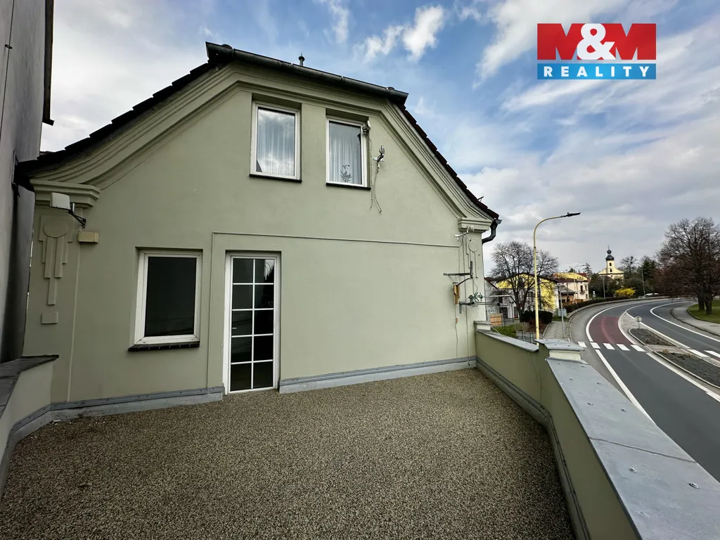 Velkou výhodou je prostorná terasa o rozloze 38 m² s výhledem na kulturní dům a okolí.