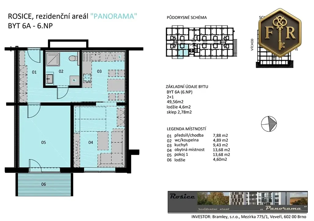 Lokalita patří ke klidným částem Rosic s výbornou dostupností do Brna, v docházkové vzdálenosti je kompletní občanská vybavenost i dostatek zeleně. Přímo za domem najdete oplocené dětské hřiště, vedle domu soukromou školku a základní školu, což z bytu dělá skvělou volbu pro rodinu i jako investici.