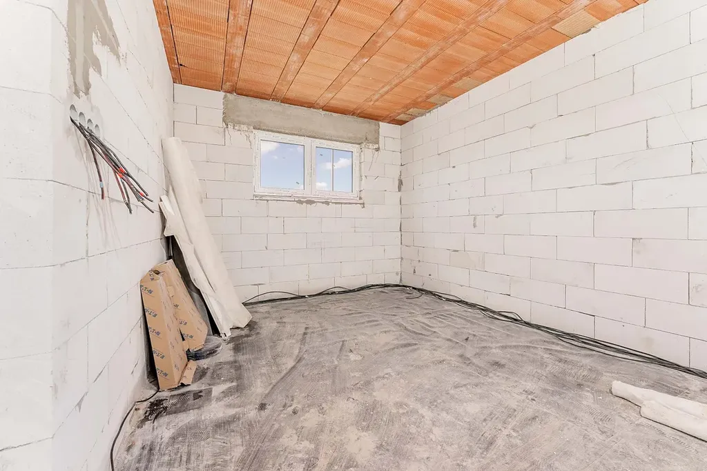 Dům má hotovou fasádu a osazená okna. Interiér je připraven k dokončení. Novému majiteli se tak otevírá možnost zvolit si interiér dle vlastního vkusu.