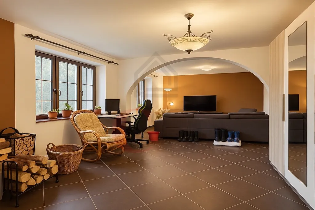 V přízemí dále najdete posilovnu a místnost vhodnou pro posezení s přáteli. Výhodou je také přilehlá garáž.