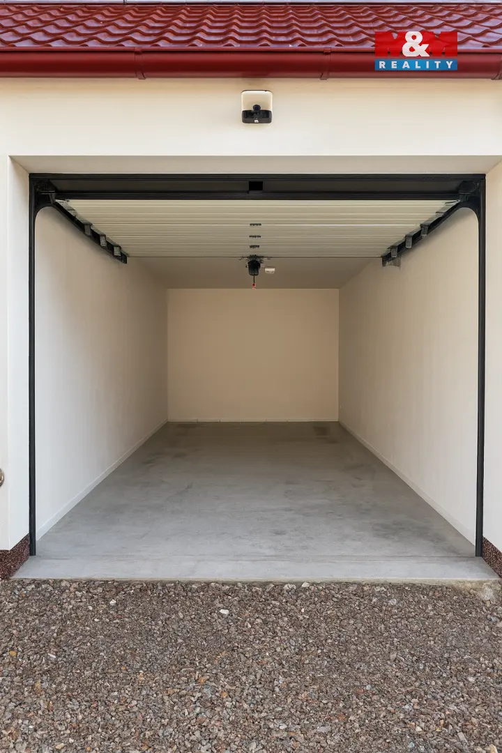 Každá garáž má vlastní přívod elektřiny, osvětlení, dvě zásuvky, a je vybavena elektrickými vraty Trido. Vjezdová výška činí 211 cm a užitná plocha jedné garáže je cca 18 m².
