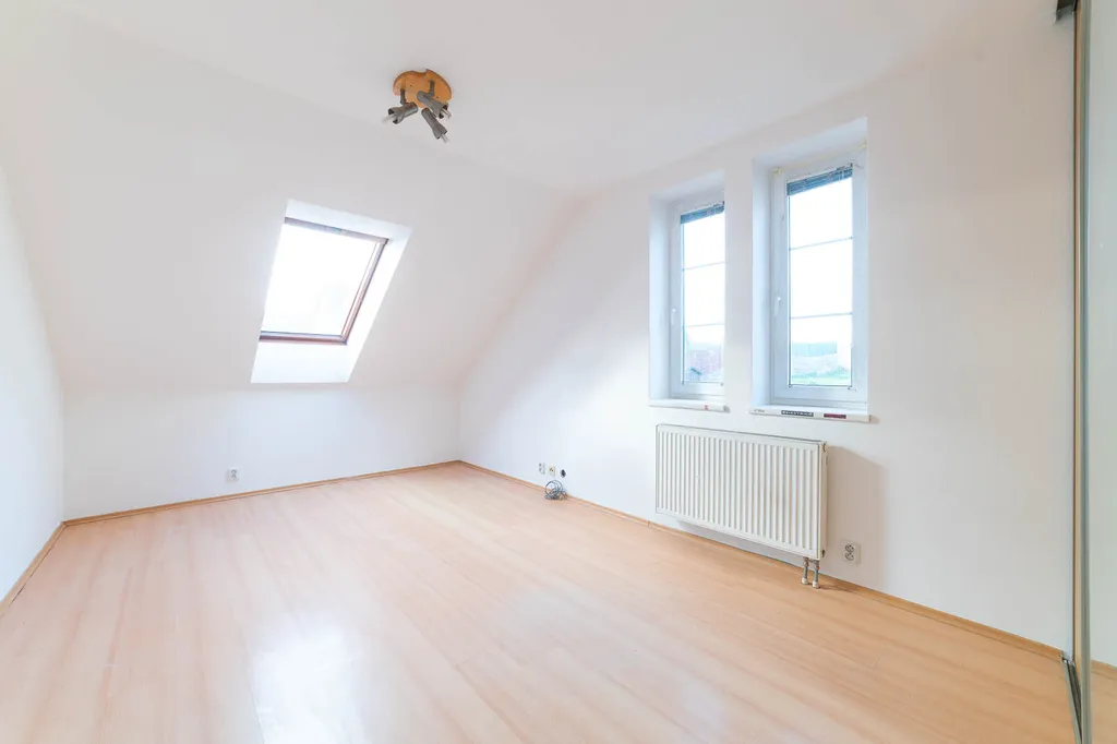 Hlavní ložnice navíc nabízí chytře řešenou samostatnou šatnu, prakticky skrytou v prostoru – detail, který ocení nejen dámy.