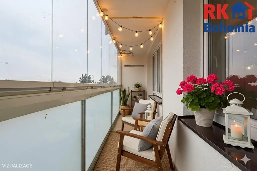 - Velkorysá lodžie: Z obývacího pokoje vstoupíte na prostornou zasklenou lodžii (6,96 m), která slouží jako ideální místo pro relaxaci za každého počasí.
