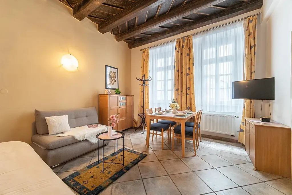 Nabízíme k prodeji mimořádnou bytovou jednotku o celkové výměře 108,6 m², nacházející se v absolutním centru Prahy, pouhých 80 metrů od Karlova mostu, na prestižní Královské cestě. Tato adresa patří dlouhodobě k nejvyhledávanějším v celé Praze a spojuje jedinečnou historickou atmosféru s výbornou dostupností všech služeb.