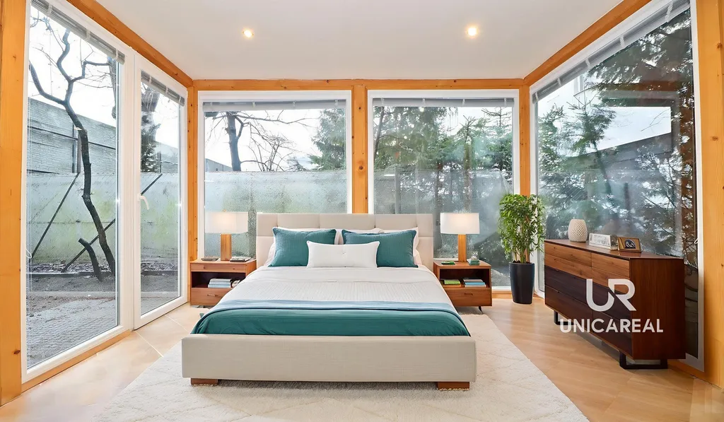 Jedná se o dispozičně unikátně řešený byt, kde ložnice je panoramatická se čtyřmi prosklenými stěnami. Z ložnice se pak vchází přímým vstupem na vlastní zahradu, která je příjemným uživatelským bonusem pro nerušený relax. Ačkoliv v těsné blízkost centra, je byt velmi klidný, protože je orientovaný do vnitrobloku. Pro lepší představu o dispozici je součástí prezentace půdorys a vizualizace