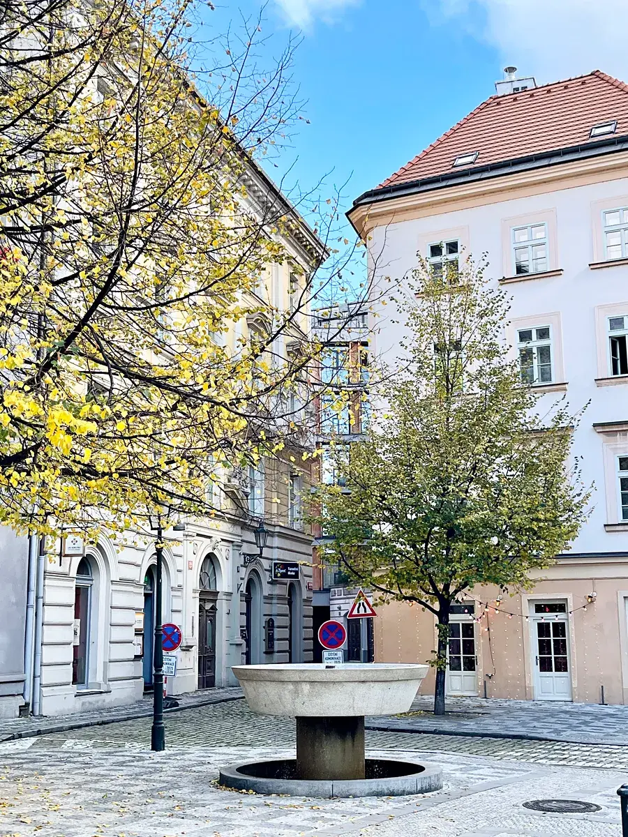 Z malého balkonu do vnitrobloku si můžete v teplých měsících vychutnat ranní kávu a klidnou atmosféru pražského dvora.