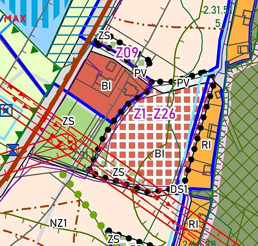Velmi malá část pozemku patří do plochy ZS – zeleň soukromá a vyhrazená.
