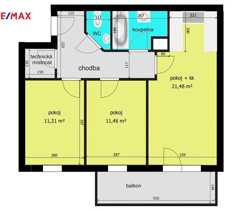 Byt dále nabízí dva samostatné neprůchozí pokoje o výměrách 11,31 m² a 11,46 m², koupelnu, samostatné WC, chodbu a technickou místnost. Samozřejmostí jsou vestavěné skříně, pračka, sušička a další prvky nadstandardního vybavení, které zajišťují maximální komfort bydlení.