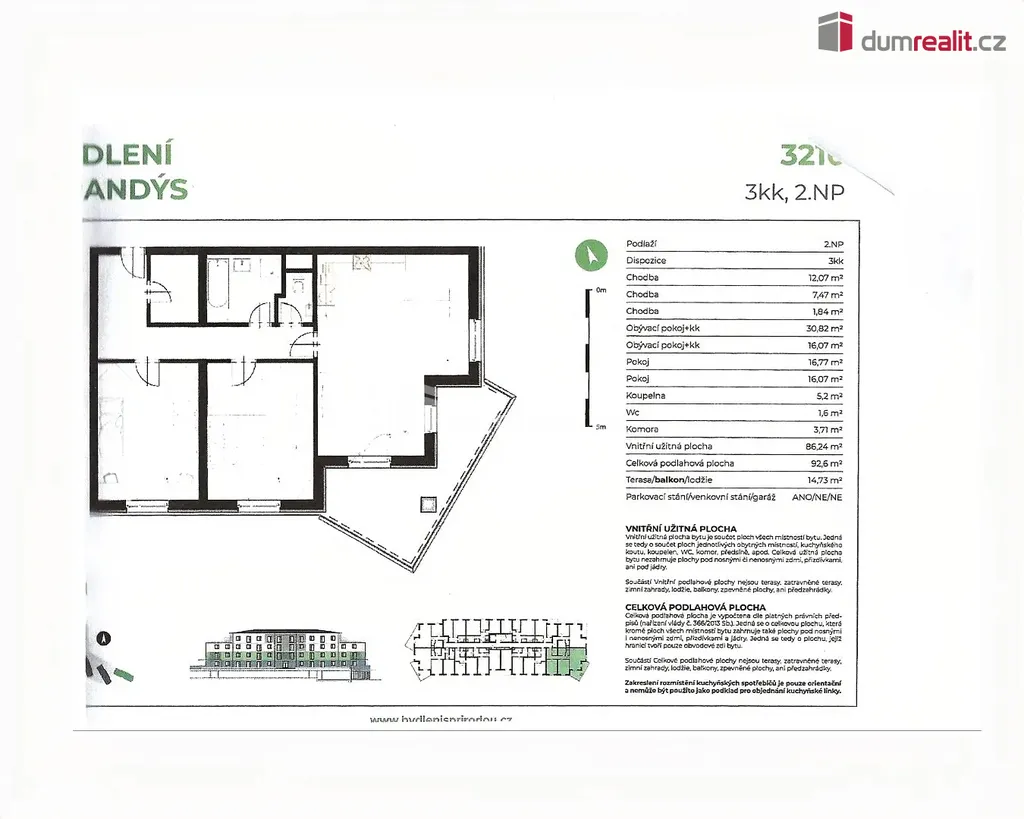 dvě samostatné ložnice (16,77 m² a 16,07 m²),