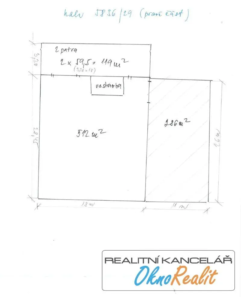Realitní kancelář nabízí k pronájmu plechovou, temperovanou halu o výměře 631 m2 včetně zděné vestavby. Do objektu je zavedena elektřina a jeho světlá výška je 8 m. K dispozici jsou plynovým kotlem vytápěné kancelářské prostory, sociální zařízení, šatny. Objekt je vhodný i jako prodejna. Součástí pronájmu je i venkovní oplocená plocha o výměře 286 m2. Nájem vnitřních prostor je ve výši 1000,- Kč/m2/rok, nájem venkovní plochy je ve výši 300,- Kč/m2/rok. V případě zájmu kontaktuje makléře nabídky.
