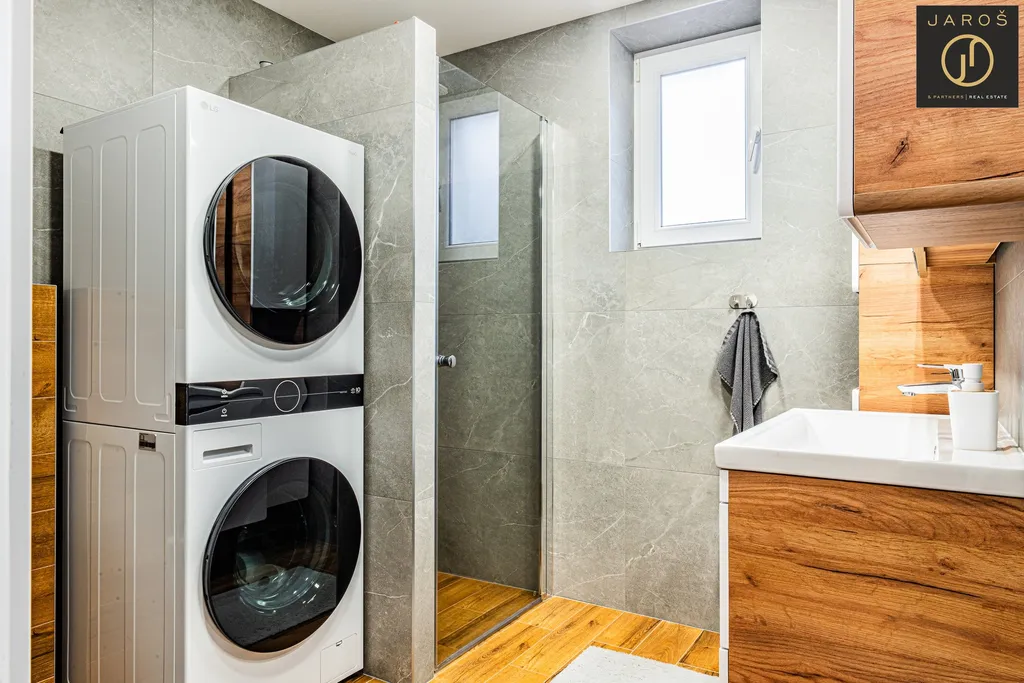 Samotný byt je rovněž po kompletní rekonstrukci – nové rozvody, moderní koupelna, plastová okna. Energetická náročnost budovy je PENB třídy C. Měsíční poplatky činí cca 5.500 Kč (z toho fond oprav 1.000 Kč) + spotřeba elektřiny, a to pro čtyřčlennou domácnost (2+2). Nastěhování je možné ihned, vyjma elektrospotřebičů /lednice, pračka, TV/ a sedací soupravy může v bytě zůstat vybavení.