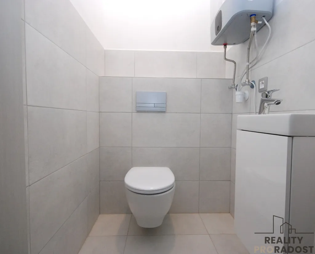 Dispozice bytu je následující: prostorná vstupní chodba, koupelna se sprchovým koutem, umyvadlem a místem na pračku a sušičku, samostatné WC, technická místnost vybavená policovým regálem, kuchyně se spížkou a kompletně vybavenou kuchyňskou linkou, 1 x ložnice se vstupem na terasu. Pokoje v bytě jsou neprůchozí. K dispozici je šatní skříň umístěná ve vstupní chodbě bytu.