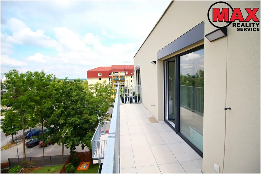Nabízíme Vám krásný byt k dlouhodobému pronájmu v novostavbě o dispozici 1+kk a velikosti 32,9m2, s krásným výhledem a prostornou terasou 13m2, situovaný ve 4. podlaží nového bytového domu s výtahem (Rezidence u Lesa).