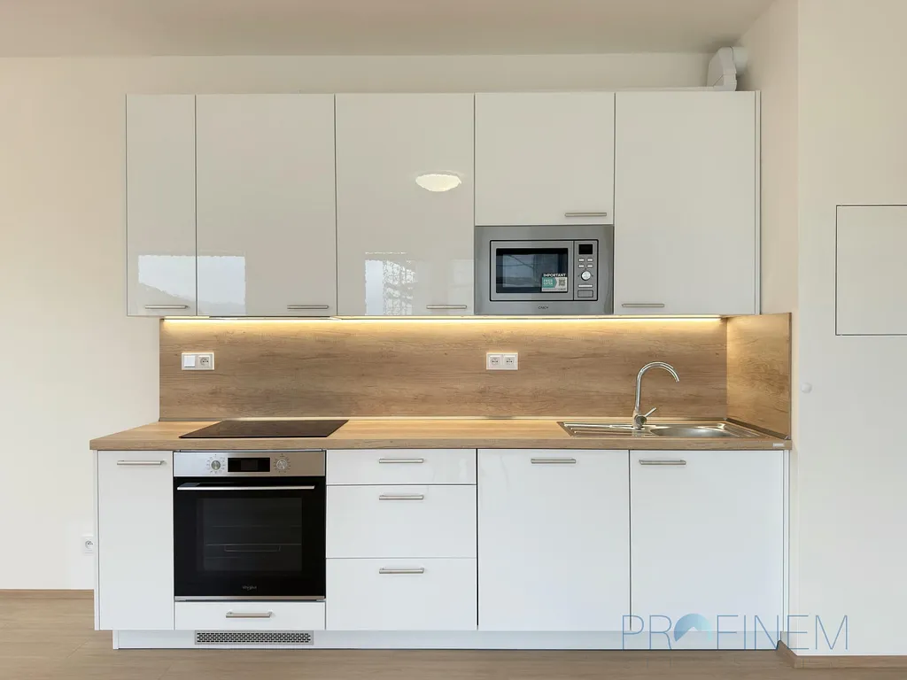 • moderní kuchyňskou linku vybavenou kvalitními spotřebiči (indukční varná deska, trouba, digestoř, velká myčka, mikrovlnka)