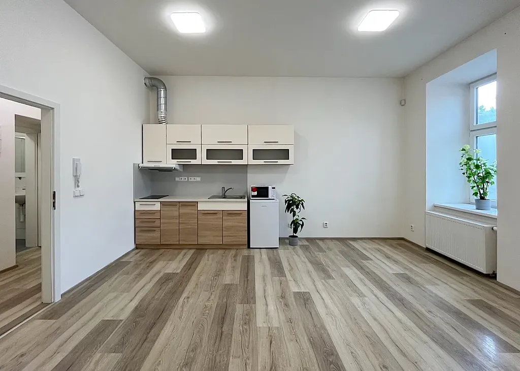 Nabízíme k pronájmu prostorný, nezařízený byt 1+kk o výměře 36m2 ve zvýšeném přízemí menšího bytového domu na ulici Lidická v Brně, přímo naproti parku Lužánky.