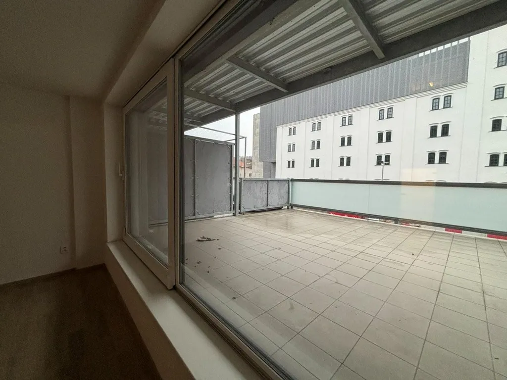 Luxusní pronájem bytu 1+kk s terasou 26 m, Rezidence bývalých mlýnů Kralupy nad Vltavou, ve 2.NP, k dispozici výtah, přístup z pavlače.