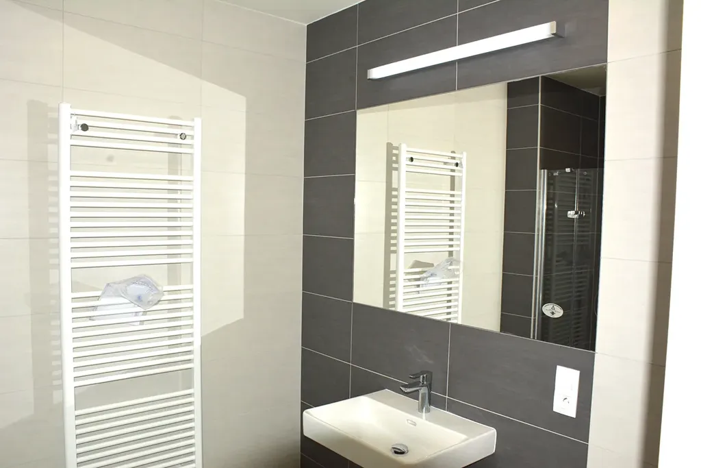 Koupelna disponuje sprchovým koutem umyvadlem a WC.