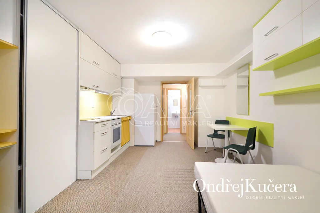 Tento prakticky řešený byt 1+kk s celkovou výměrou 29 m2 je vhodný pro jednotlivce, případně pár. Nachází se ve sníženém přízemí cihlového domu. V roce 2023 prošel rekonstrukcí a je plně vybavený. Má pokoj s kuchyňskou linkou, vstupní předsíň, koupelnu s vanou a samostatnou toaletu. Je vybavený vestavěnou skříní, pracovním stolem, postelí 130 cm širokou, jídelním stolem se židlemi, sklokeramickou varnou deskou, elektrickou troubou, lednicí s mrazákem, pračkou a bojlerem na ohřev vody v koupelně. Vedle bytu je také možnost využití společného uzamykatelného prostoru na kola.