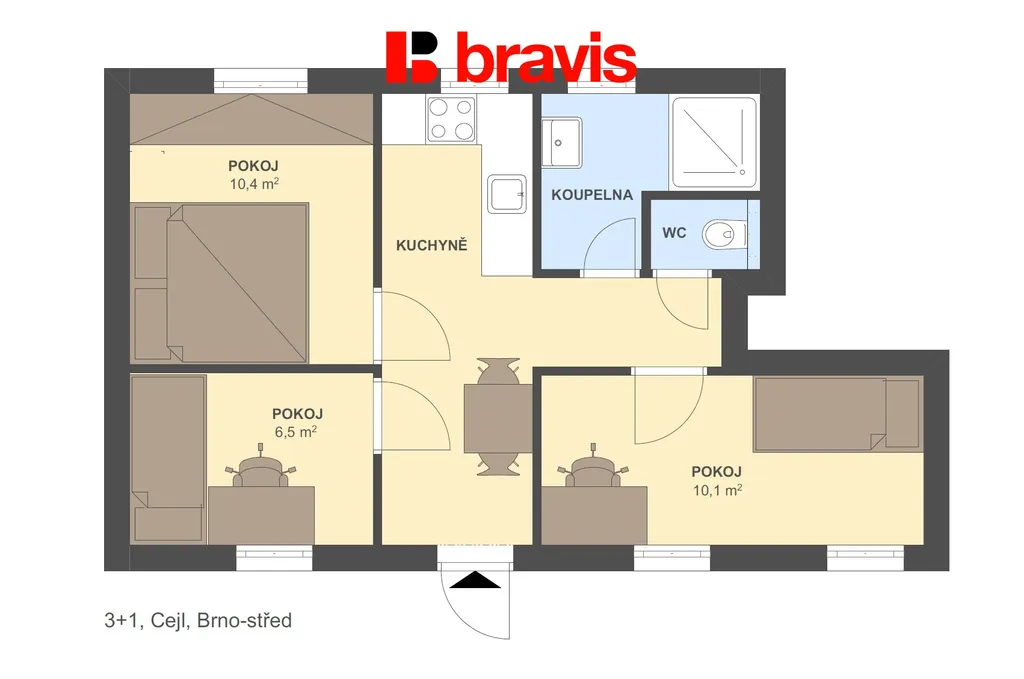 Nabízíme k prodeji bytovou jednotku o dispozici 3+1 a podlahové ploše 48 m², která se nachází ve vnitrobloku domu na ulici Cejl. Velkou výhodou je samostatný vstup přímo z vnitrobloku, což zajišťuje větší soukromí a komfort.