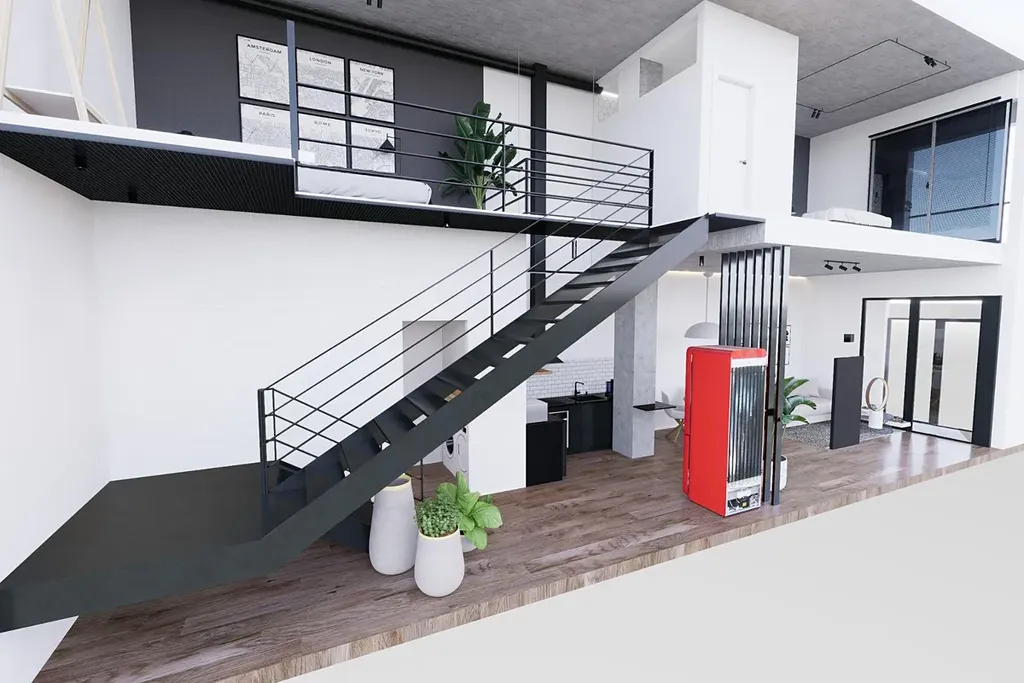 Každé bydlení bylo kompletně přepracováno, aby nabídlo svěží, otevřený a elegantní prostor. Projekt zahrnuje mezonetové lofty s 1 nebo 2 ložnicemi a 2 koupelnami, všechny s působivými otevřenými prostory s dvojnásobnou výškou stropu, které zvyšují přirozené světlo a vytvářejí autentickou loftovou atmosféru.