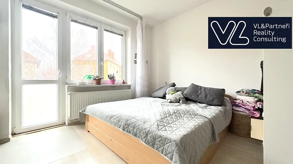 Dispozice bytu je praktická a funkční. Z prostorné vstupní chodby je přístup do všech místností – samostatné kuchyně, obývacího pokoje a dalšího pokoje, který lze využít jako ložnici, dětský pokoj nebo pracovnu. Obývací pokoj je světlý a nabízí vstup na balkon. Byt působí vzdušně a díky orientaci je dostatečně prosvětlený po celý den.