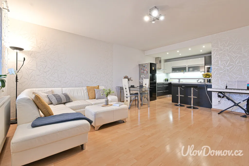 Ve výhradním zastoupení majitele nabízíme ke koupi byt 2+kk v osobním vlastnictví, který disponuje podlahovou plochou 61 m². Přísluší k němu prostorný balkón o výměře 13 m2, garážové parkovací stání a sklepní kóje o výměře 1,35 m2. Velkou výhodou nemovitosti je komora/šatna přímo v bytě, která nabízí nadstandardní úložný prostor o výměře 3 m2. Byt se nachází v 5. nadzemním podlaží bytového domu, který je součástí projektu Milíčovský háj z roku 2009 (developer Skanska).