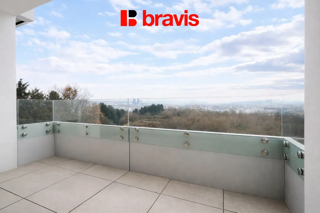 Obývací část je nezařízená. Z obývací částí je vstup na lodžii s nádherným výhledem na celé Brno.