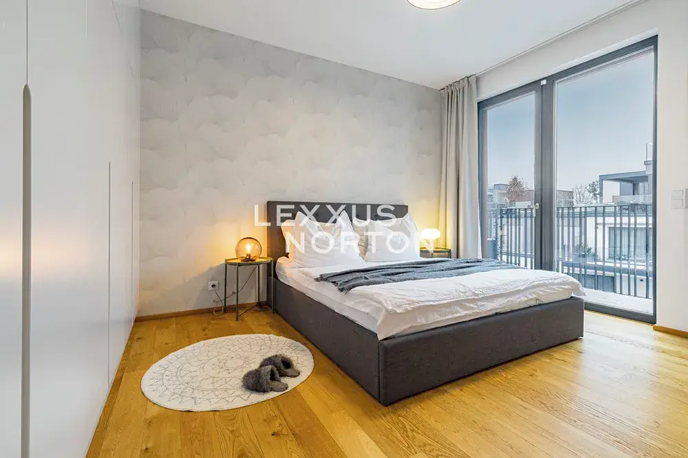Byt je vybaven inteligentní domácností, která umožňuje ovládání vytápění, chlazení, rekuperace i venkovních žaluzií. Samozřejmostí je bezpečnostní alarm a příprava pro další smart technologie. K jednotce náleží dva prostorné sklepy a čtyři parkovací stání s možností nabíjení vhodná i pro SUV.